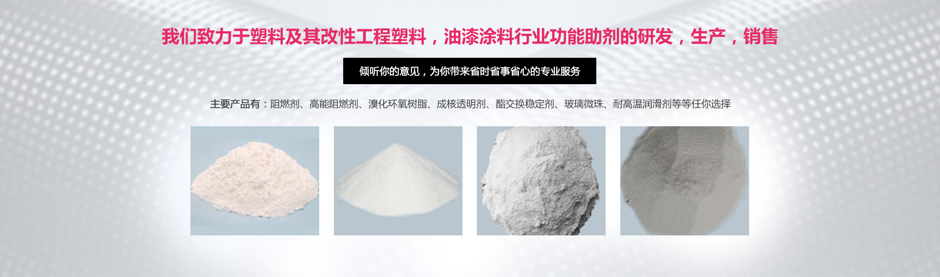 專注各種阻燃劑的研發(fā)與生產(chǎn):尼龍阻燃劑 , 無(wú)鹵阻燃劑 , 玻璃微珠 , 灼熱絲
